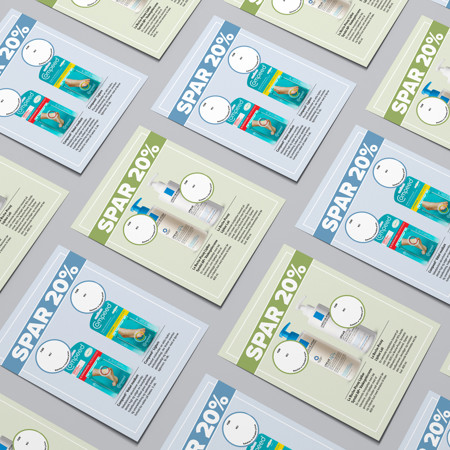 Som en del af instore materiale på apotekerne producerer vi 12 gange om året POS materiale, som primært benyttes til butiks-øer.